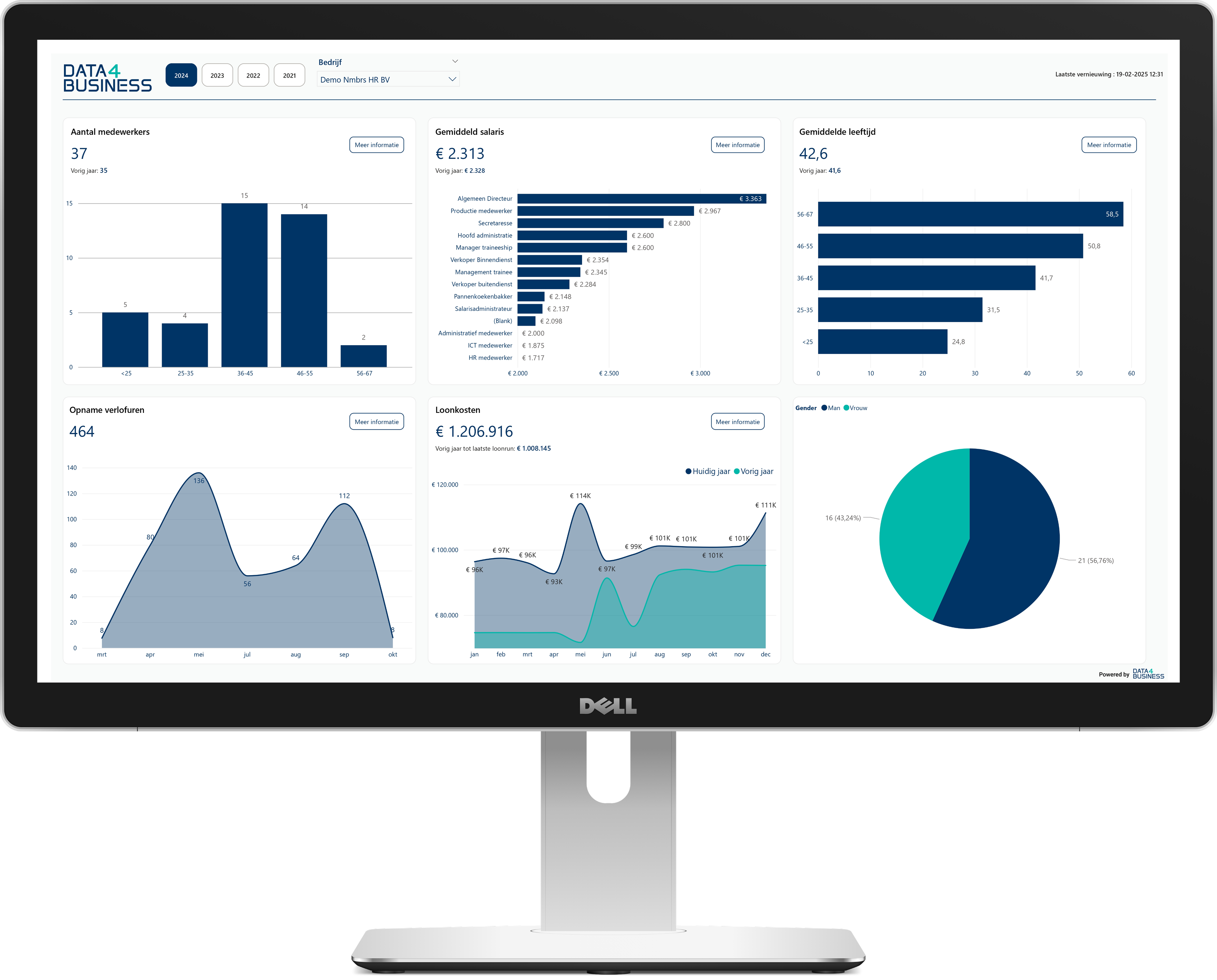 Wij bouwen dashboards met Power BI en bieden een unieke Mijn Data4Business-omgeving, waarin klanten zelf de controle hebben over hun data. Zo kunnen ze eenvoudig gegevens beheren, analyseren en direct inzichten verkrijgen.